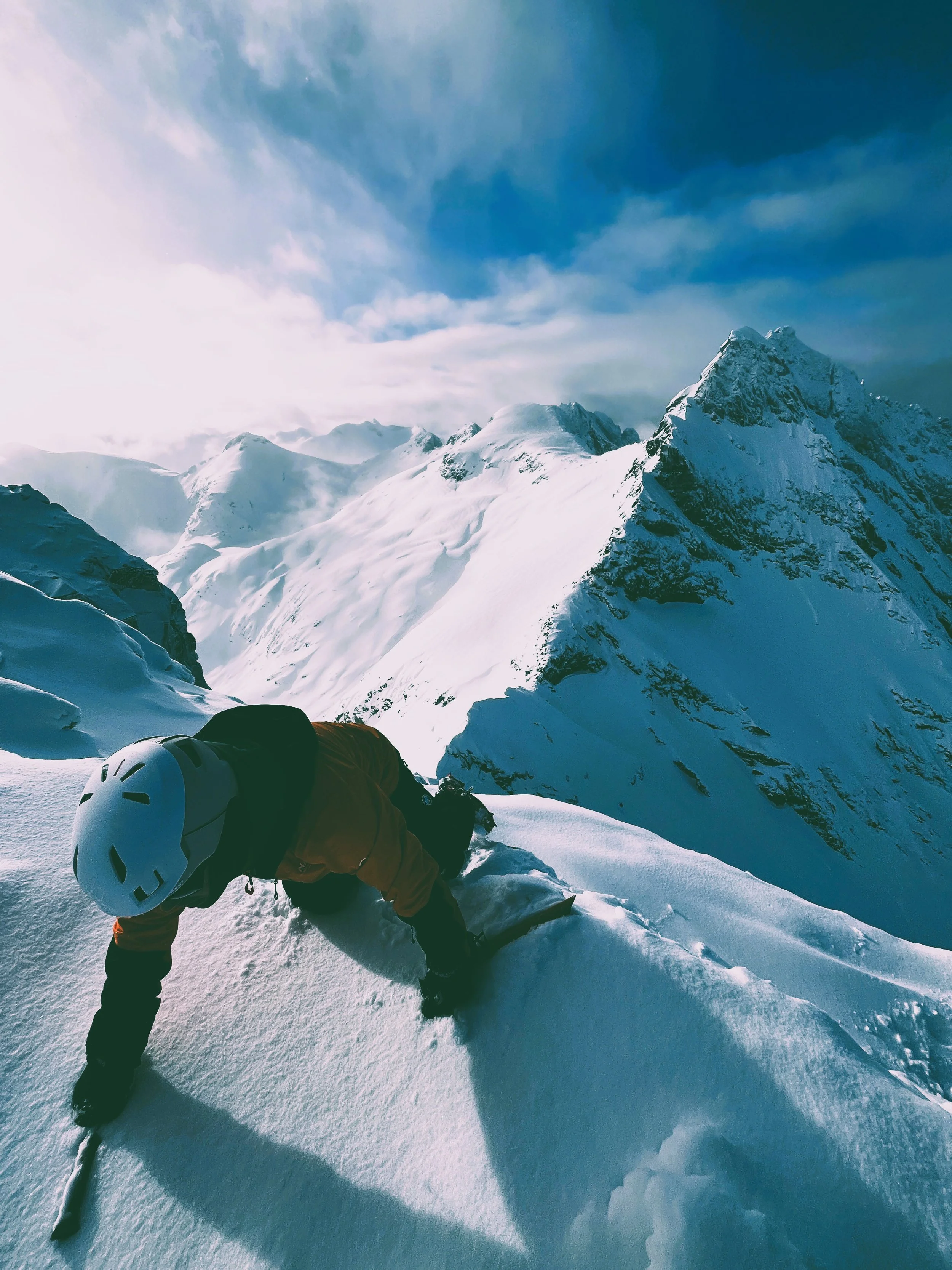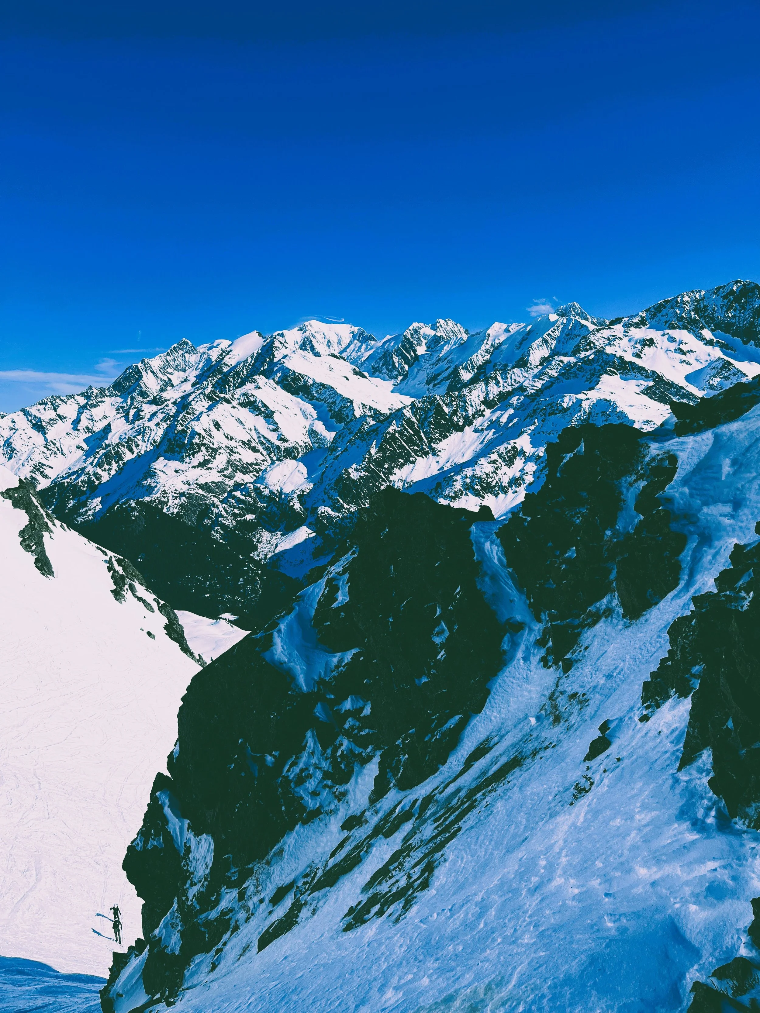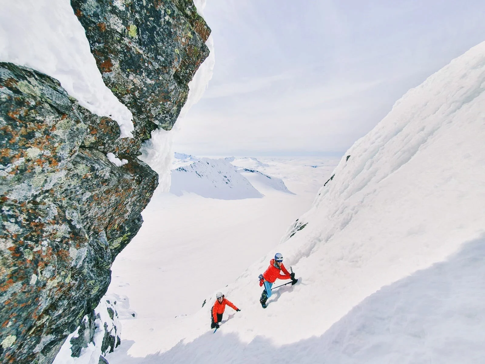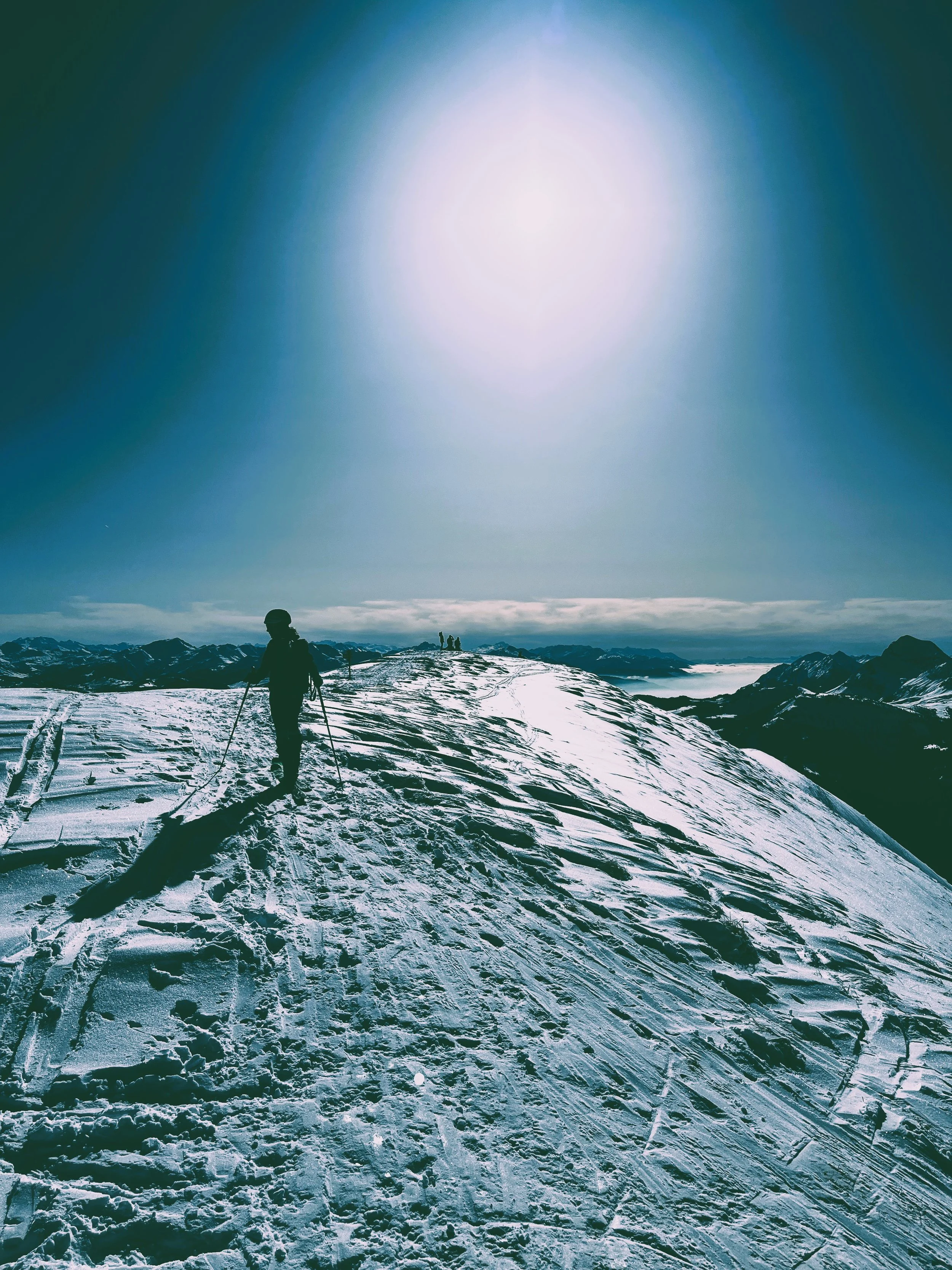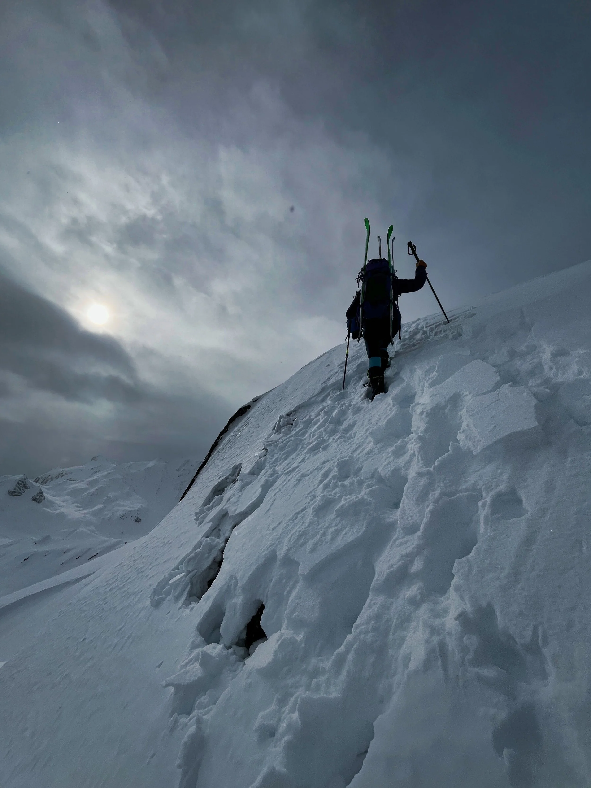 The first peak, Pilan, was straightforward enough. We reached the col, swapped skis for crampons, and scrambled up a ridge to the summit. The views? Snow-covered peaks plunging straight into the fjords, classic Lofoten. The ski down was actually enjoyable—fresh snow on a solid base, a rare combination this season. So far, Lofoten was outperforming the Alps.